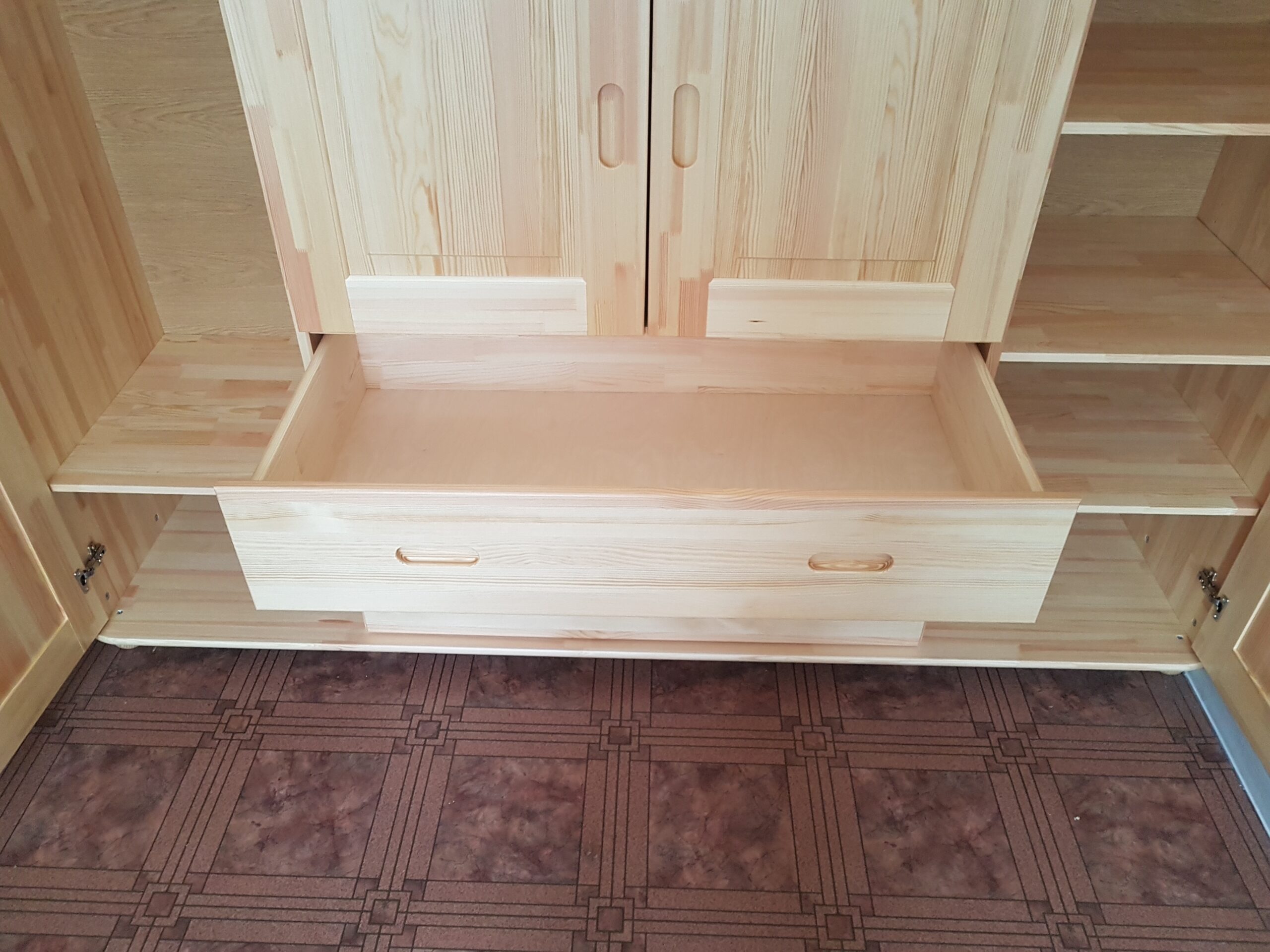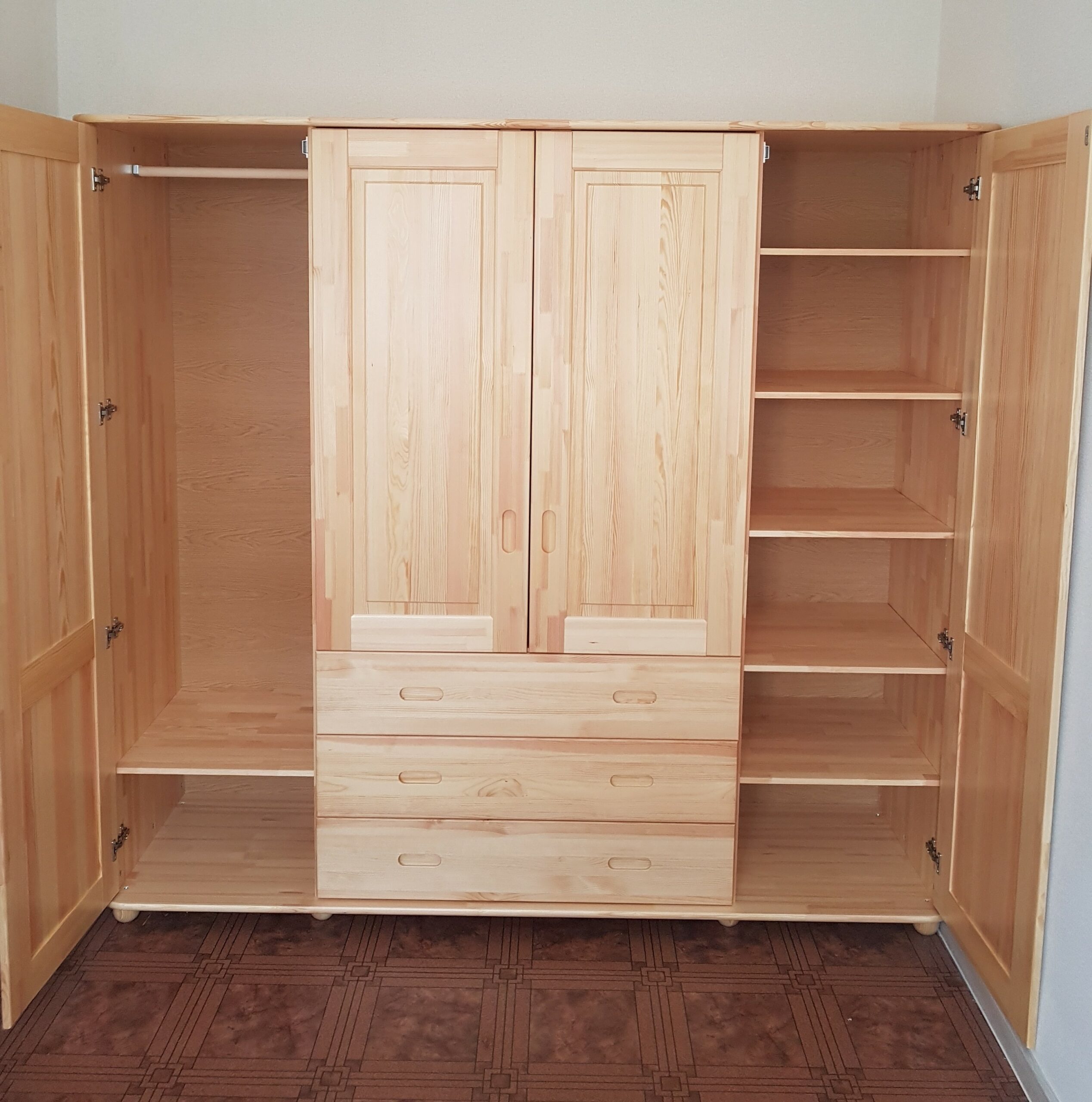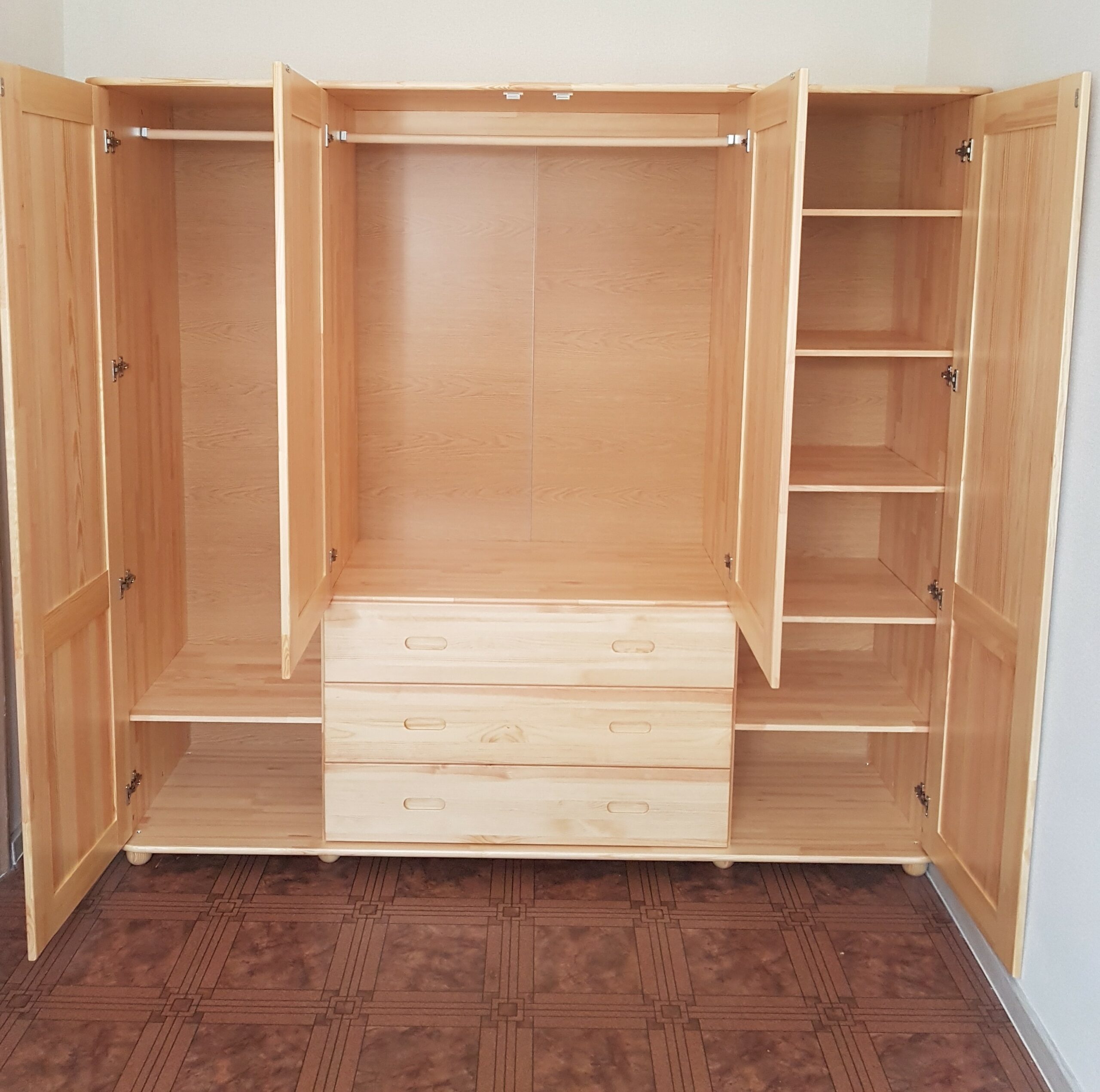 Priedes masīvkoka četrdurvju drēbju skapis ir lieliska izvēle sevišķi tiem, kuriem ir daudz mantu un tā vien liekas, ka skapis kādu dienu varētu būt pārāk mazs.