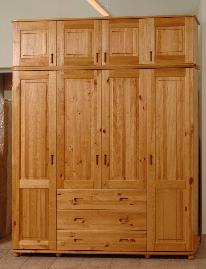 Dabīgās Priedes Masīvkoka Četrdurvju Drēbju Skapis