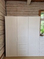 Dabīgās Priedes Masīvkoka Guļamistabas Trīsdurvju Skapis “Amata” ar plauktiem