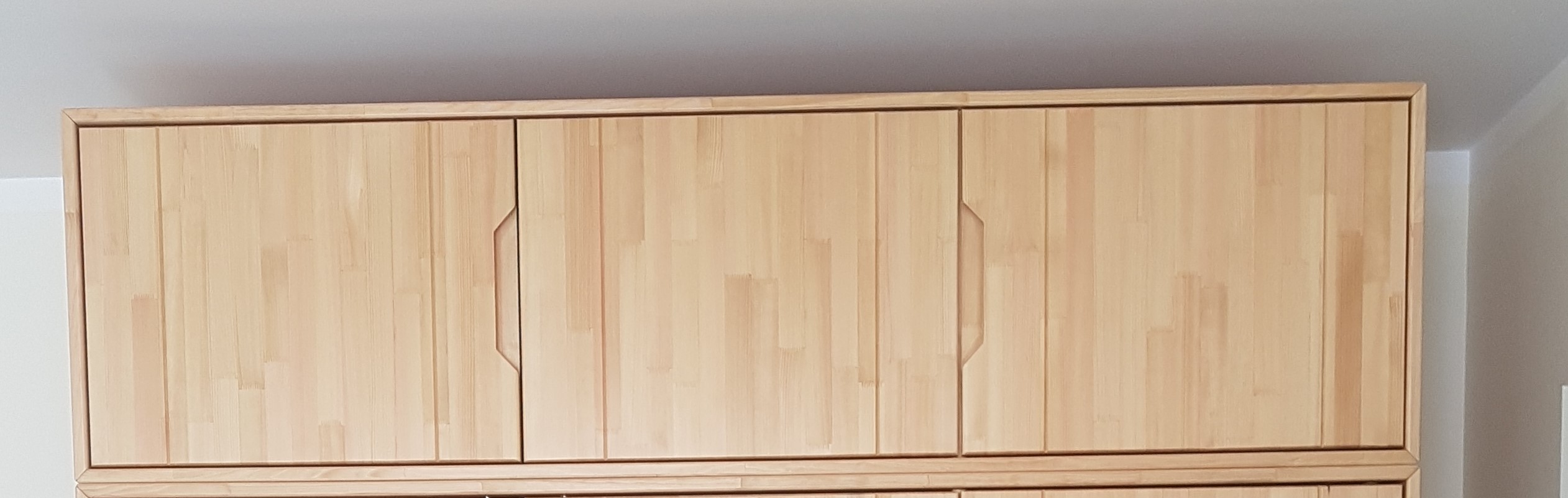 Dabīgās Priedes Masīvkoka Guļamistabas Trīsdurvju Skapja Antresols “Amata”