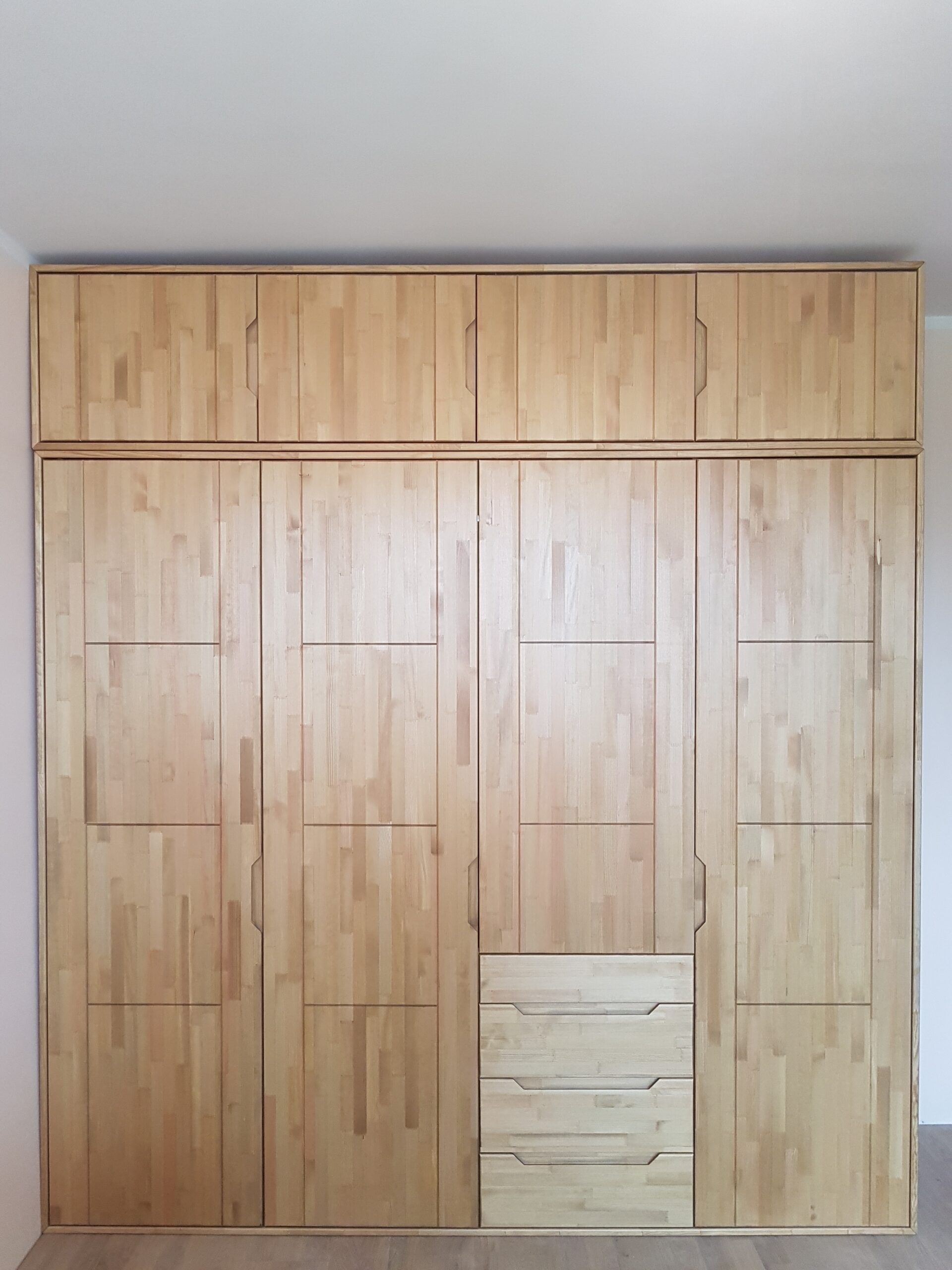 Dabīgās Priedes Masīvkoka Guļamistabas Četrdurvju Skapja Antresols “Amata”
